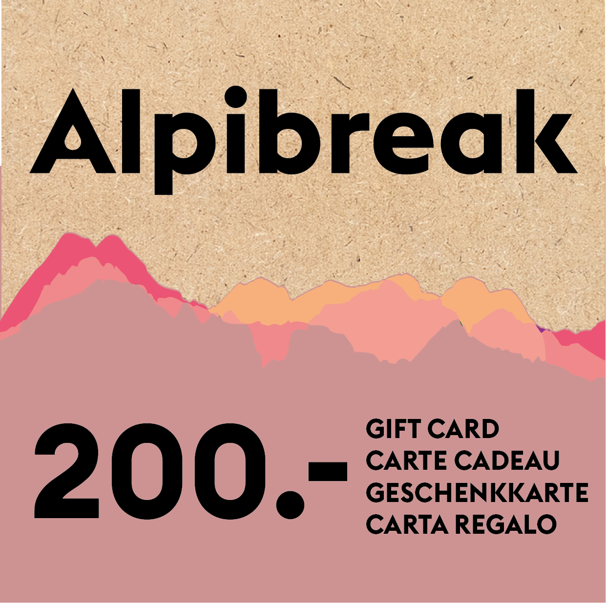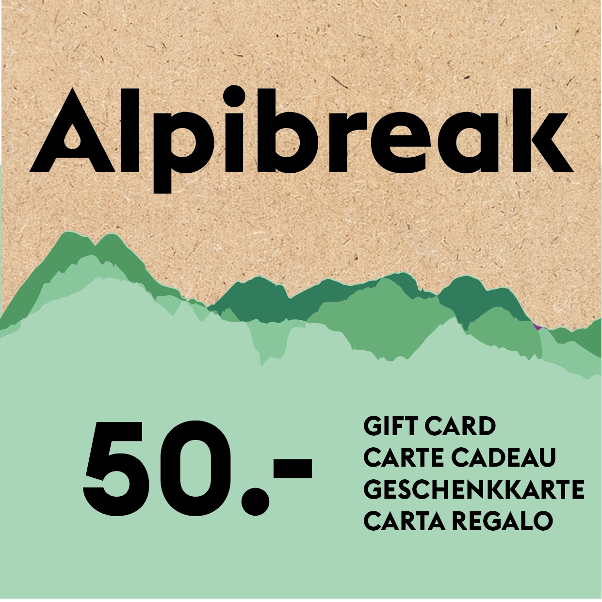 Unsere Webshop-Geschenkkarte kann nur für Einkäufe in unserem Webshop www.alpibreak.com verwendet werden.