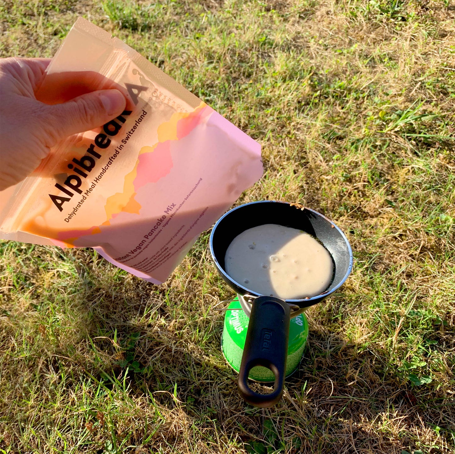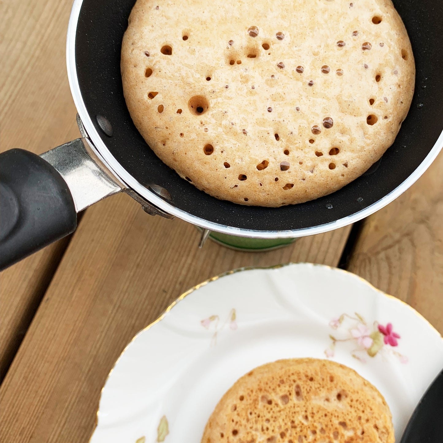 Couper le coin indiqué et verser une portion de pâte dans la poêle pour former les pancakes. Les cuire des deux côtés.